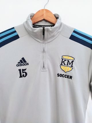 📝 Jersey sudadera Adidas gris con logos bordados.Equipo KM Soccer. USA. Tiene un cordón en la parte de la cintura. Talla M 👕 56 cm axilas 46 cm hombros 72 cm largo 🔎 En muy buen estado. Tiene un pequeño enganche. Ver foto. 🏷️ #adidas #adidassweatshirt #jerseyadidas #adidassportswear #adidashoodie #adidassoccer #M #soccer #USAsoccer #KMsoccer #KMteam #USA #futbol