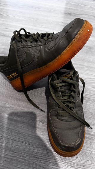 Deportivas Nike Air Force 1 con tecnología Gore-Tex. Con marcas de uso pero totalmente funcionales - Color verde y suela marrón. - Detalle de texto GORE-TEX en el lateral.