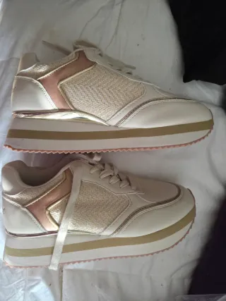 Zapatillas deportivas de la marca Don Algodón, a estrenar. - Diseño moderno en tonos beige y detalles dorados. - Cierre con cordones. - Suela cómoda para el día a día. - no tienen su caja porque la tire