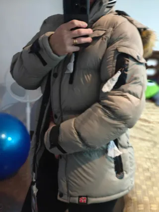 Chaqueta acolchada con un diseño moderno y capucha. - Cierre de cremallera. - Cordón ajustable en la cintura. - Bolsillos laterales.