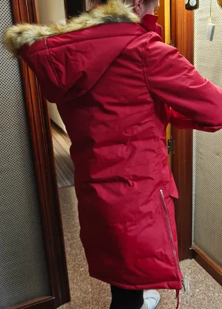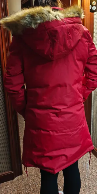 Chaqueta parka roja mujer con capucha