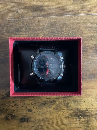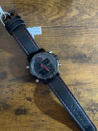 Reloj Naviforce con un diseño elegante y moderno, ideal para complementar tu estilo. - Correa de cuero negra. - Detalles en rojo. - Esfera con pantalla digital y manecillas. - Resistente al agua -Le puedes poner alarma Para más información no dudeis en preguntar!