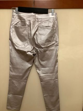 Pantalón de la marca Tifossi con un acabado metalizado. - Diseño ajustado. - Cintura alta. - Cierre de botón y cremallera.