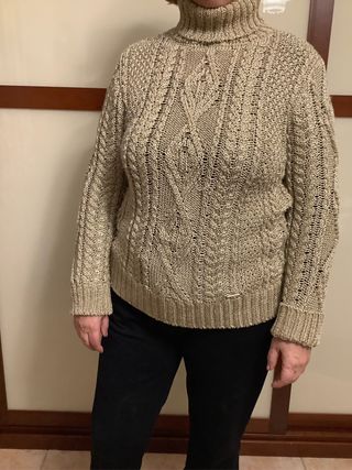 Jersey de punto con cuello alto y un bonito diseño trenzado. El color dorado le da un toque elegante. - Diseño con trenzas. - Cuello alto. - Tejido con hilo metalizado.