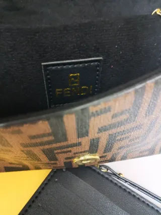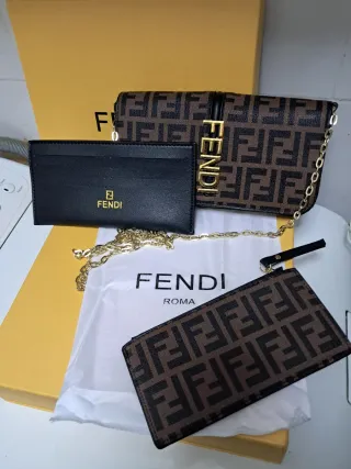 Conjunto de accesorios - Bolso con cadena dorada. - Tarjetero negro. - Neceser con monograma FF.