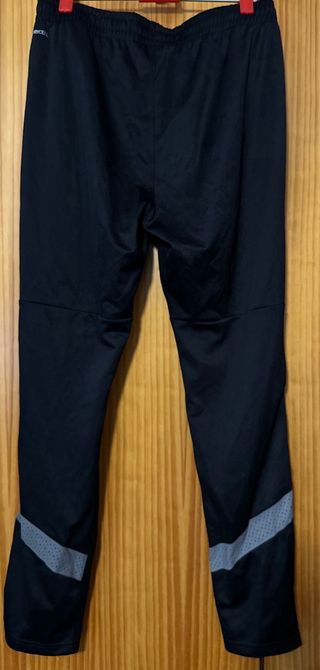 Pantalón deportivo del Valencia CF. - Diseño en color negro. - Logo del club en la pierna izquierda. - Cremalleras en los tobillos. - Talla M.