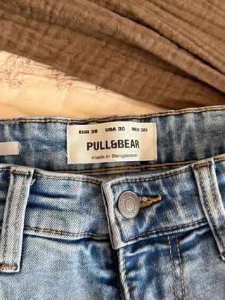 Vaqueros de Pull&Bear con un lavado claro y moderno. - Corte ajustado. - Detalle de etiqueta de cuero en la parte trasera. - Diseño clásico de cinco bolsillos.
