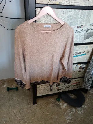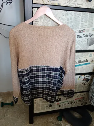 Jersey punto marrón y multicolor