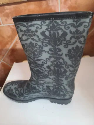 Botas de agua para mujer con un bonito estampado. - Diseño floral en tonos grises y negros. - Caña alta. - Suela de goma.