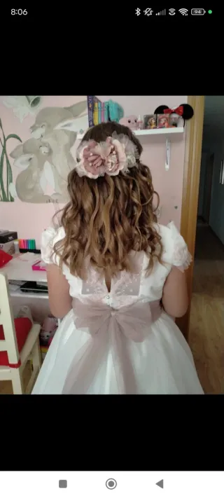 Vestido de comunión blanco roto y rosa