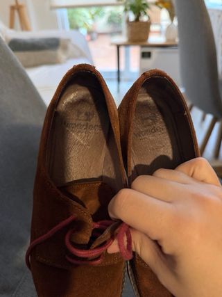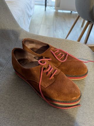 Zapatos de ante marrones con cordones rosas