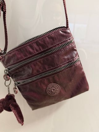 Bolso bandolera de la marca Kipling en un bonito color morado. Es un accesorio práctico y ligero. - Múltiples compartimentos con cremallera. - Correa ajustable. - Adorno de mono de peluche. - Logo circular de la marca.