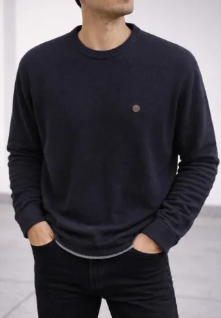 Jersey de punto fino con un discreto detalle de logo. - Cuello redondo. - Manga larga. - Bajo y puños elásticos.