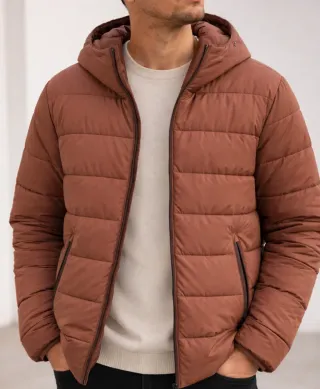 Abrigo acolchado con capucha. - Cierre de cremallera. - Bolsillos laterales con cremallera. - Diseño acolchado horizontal.