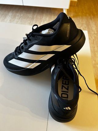 Zapatillas de running Adidas Adizero Evo SL talla 43 1/3 en color negro y blanco. - Modelo Adizero Evo SL. - Diseño con las icónicas tres franjas blancas. - Cierre de cordones. - Suela con tecnología Lightstrike Pro.