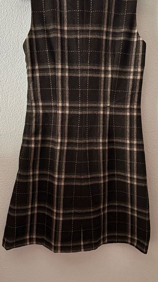 Pichi de la marca Easy Wear con un diseño de cuadros. - Cuello redondo. - Tirantes con detalle de botón. - Cintura marcada. - Largo hasta la rodilla. Con forro.