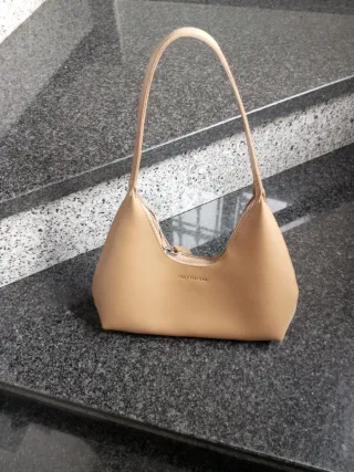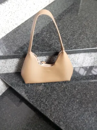 Bolso de mano con un diseño elegante y moderno. Su color neutro lo hace muy versátil. - Asa de cuero. - Cierre de cremallera. - Logo de la marca grabado.