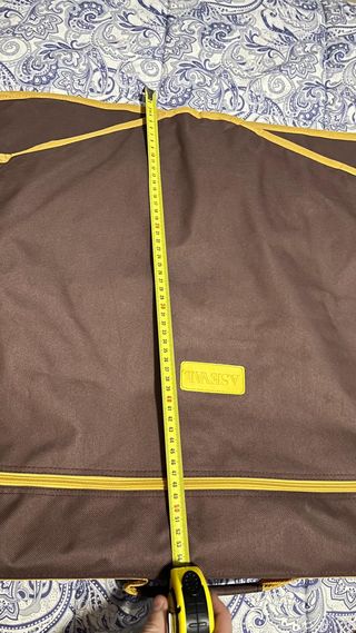 Maleta tipo portatraje. - Color marrón. - Amplio espacio para llevar trajes o vestidos de fiesta, con correa para sujetar la prenda. - Compartimiento independiente para ropa o zapatos. - Amplio bolsillo frontal con cremallera para acceso rápido. - Percha metálica para colgar el portatraje y soporte interior para perchas. - Asa superior para un agarre cómodo y bandolera para llevar al hombro. NO ENVÍO. SOLO VENTA EN PERSONA.