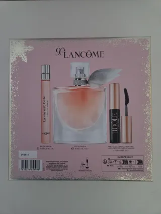 Muy completo! Ideal para regalar. Set de Lancôme que incluye: Perfume La vie est belle grande 50ml. Perfume La vie est belle de bolso 10ml. Y mascara de pestañas volumen.