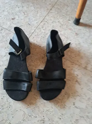 Tacones altos negros de plataforma. Material de ante. Muy bonitos y elegantes. Solo me los puse en un evento el momento de la iglesia y me los quite en la misma puerta jaja estan nuevos!