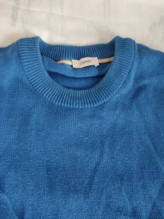 Jersey de punto en tono azul, ideal para añadir a tu armario. - Cuello redondo. - Manga larga. - Puños y bajo acanalados.