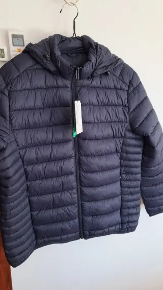 Chaqueta acolchada con capucha, ideal para el frío. - Cierre de cremallera frontal. - Bolsillos laterales. - Puños elásticos.