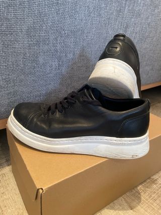 Zapatillas de piel en color negro, talla 37. - Material exterior de piel. - Cierre con cordones. - Suela blanca. - Logo de la marca en la plantilla.