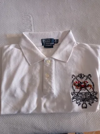 Polo de manga corta de la marca Polo Ralph Lauren. - Diseño clásico con cuello. - Detalle bordado en el pecho con motivo de caballos y escudos. - Cierre de dos botones. - Logo de la marca visible en la etiqueta interior.