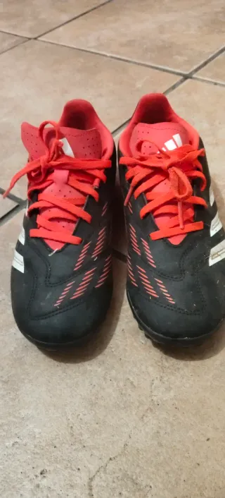 Botas de fútbol Adidas Predator en color negro. Diseñadas para un ajuste cómodo y seguro. - Parte superior sintética. - Cierre sin cordones con posibilidad de insertarlos - Suela exterior para césped artificial o natural. -Con poco uso y un pequeñisimo desgaste en la punta de la bota -Muy bonitas estéticamente -Se venden en su propia caja -Precio negociable