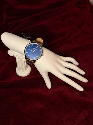 Características principales: • Estado: Nuevo • Diseño: Acero inoxidable pulido (plateado), con un diámetro aproximado de 38mm. • Dial Exclusivo: Dial azul profundo con caja de acero inoxidable plata. • Correa: Cuero auténtico marrón de altacalidad. • Maquinaria: Movimiento de cuarzo japonés de alta precisión. • Resistencia: Resistencia al agua hasta 100m.