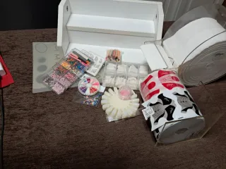 Kit completo de artículos para manicura y decoración de uñas. - Incluye moldes para uñas. - Variedad de decoraciones y apliques. - Uñas postizas de diferentes tamaños. - Rueda de decoración de uñas.