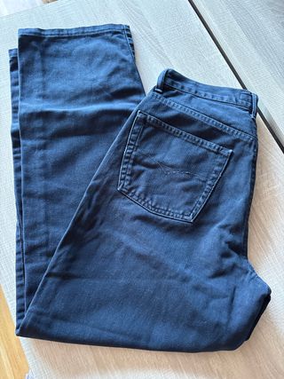 Pantalón de vestir en color azul marino, en excelente estado. - Corte clásico. - Tejido resistente y cómodo. - Dos bolsillos traseros.
