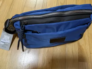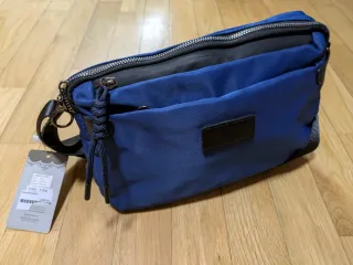 Bolso bandolera de estilo moderno y práctico. - Material textil resistente. - Cierre de cremallera. - Correa ajustable. - Bolsillo exterior. - Detalle de etiqueta. - Cordones decorativos.