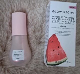 Este es el sérum Glow Recipe Watermelon Glow Niacinamide Dew Drops en tamaño mini. Ideal para un brillo natural. - Contienewatermelon, niacinamida y ácido hialurónico. - Formato mini de 15 ml (0.5 fl.oz).