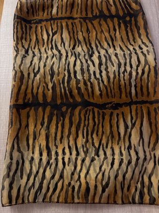 Pañuelo con un llamativo estampado animal print. - Diseño con rayas verticales en tonos marrones y negros. - Tejido ligero y vaporoso.