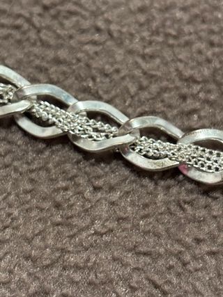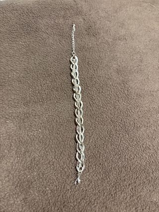 Elegante pulsera con un diseño de eslabones entrelazados. - Acabado plateado brillante. - Cadena ajustable con cierre de mosquetón.