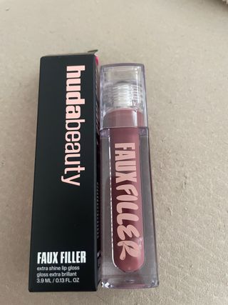 Brillo de labios Huda Beauty FAUX FILLER. - Acabado extra brillante. - Tono rosa. - Contenido: 3.9 ml / 0.13 fl. oz.