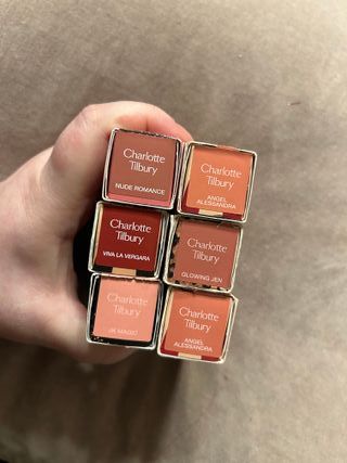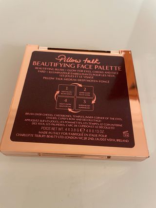 Paleta de coloretes Charlotte Tilbury con cuatro tonos. - Acabado mate y satinado. - Diseño grabado en los polvos. - Estuche dorado.