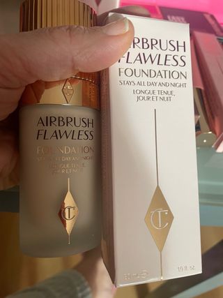 Base de maquillaje Charlotte Tilbury Airbrush Flawless. - Tono beige con detalles dorados. - Envase de 30 ml (1.0 fl. oz.).