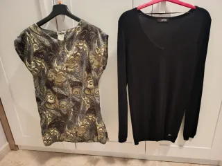 Conjunto de dos camisetas negras. - Camiseta de COS en talla M. - Blusa de Festa en talla 40. Con vuelo en las mangas.