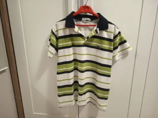 Camiseta de manga corta con cuello tipo polo y estampado de rayas. - Logo de Lacoste bordado en el pecho. - Cuello y puños de canalé. - Cierre de botones en el cuello.