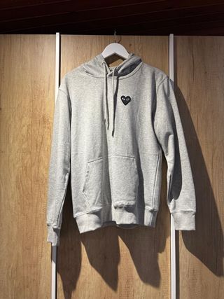 Sudadera con capucha de la marca Comme des Garçons. - Diseño con corazón negro en el pecho. - Bolsillo frontal tipo canguro. - Cordones ajustables en la capucha.