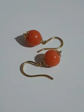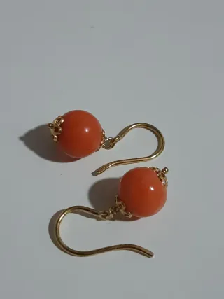 Elegantes pendientes de oro de 18 quilates con coral. - Diseño colgante con una cuenta de coral. - Cierre de anzuelo para mayor comodidad.