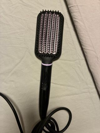 Cepillo alisador de la marca Philips en color negro y morado. Su diseño ergonómico facilita su manejo. - Mango con acabado brillante. - Cerdas diseñadas para un alisado suave. - Cable de alimentación.