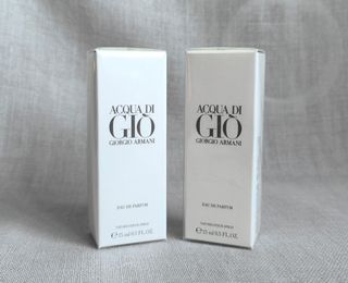 Pack con dos perfumes Acqua di Gio de 15 ml cada uno (30 ml en total). De Giorgio Armani. Fragancia masculina. Ideal para viajes y para llevar en el equipaje de mano en vuelos. PRECINTADOS