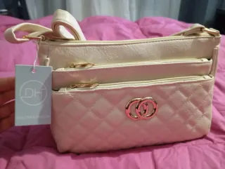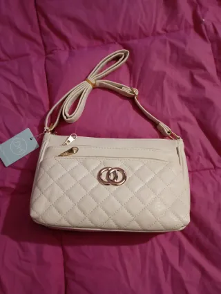 Bolso de mano y de colgar en hombro con un diseño moderno y elegante. - Compartimento principal con cremallera. - Bolsillos exteriores. - Asas cómodas para llevar en la mano o el antebrazo. Varios departamentos MUY NUEVO USADO UNAS HORAS MEDIDAS EN LAS FOTOS Se entrega en persona Visita mi página para ver otras ofertas