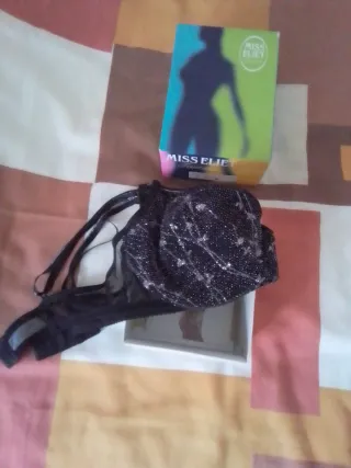 Sujetador de la marca Miss Eliet con un diseño elegante. - Color negro con detalles plateados. - Tirantes ajustables. A ESTRENAR CON ETIQUETA ORIGINAL Y EMBALAJE ORIGINAL Se entrega en persona Visita mi página para ver otras ofertas