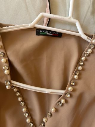 Vestido largo beige con perlas