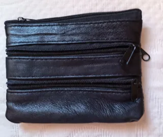 Monedero de piel color negro con cierre de cremallera. A ESTRENAR - Material: Piel auténtico - Cierre: Cremallera. - Diseño: Compartimento principal con cremallera. Se entrega en persona Visita mi página para ver otras ofertas