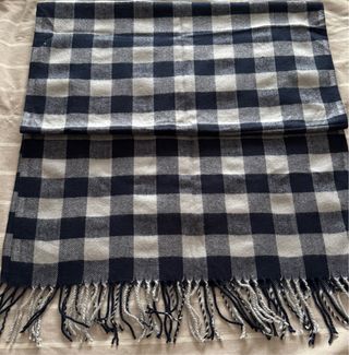 Bufanda ancha con diseño de cuadros. - Material: Algodón y viscosa. - Diseño: Cuadros. - Colores: Azul y gris. Muy calentita. Tacto suave. 186cm de largo y 61 de ancho aproximadamente. Nuevo sin etiquetas.